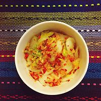 4. Spread chili sauce on each layer of pickled cabbage, put it in an airtight container, marinate for a day or two, and then it is ready to eat.