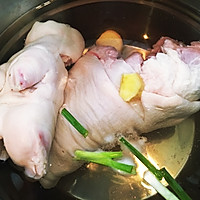 Pig’s trotters actually contain pig’s feet and small hooves. Put it in a pot of cold water and cook with green onions and ginger.
