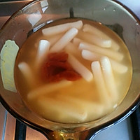 Boil the rice cakes, soak them in cold water after cooking to make them tough (boil and roll for 3 minutes)