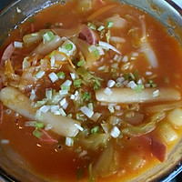 Put water in a pot, rice cakes, Korean chili sauce (just submerge the rice cakes in water)