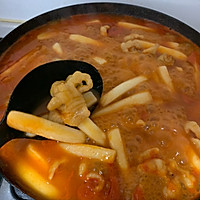 Simmer slowly over low heat, keep stirring the rice cakes to prevent sticking to the pan, press until the soup is thick, you can,