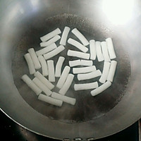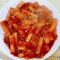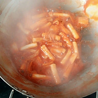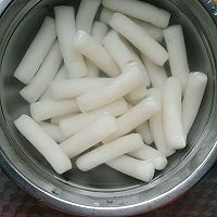 (2) Put 250ml of water in a pan and bring to a boil, then add the rice cakes and cook for 2-3 minutes.
