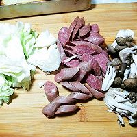 Cut the cabbage into cubes, slice the Taiwanese sausage and set aside