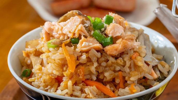 1. Fresh salmon can be replaced with canned tuna, burdock can be replaced with yam or carrot, maitake mushrooms can be replaced with oyster mushrooms and crab-flavored mushrooms, and no miraline can be added; 2. Peel the burdock with the back of a knife and cut it into small slices, mainly try not to soak it in water; 3. If you feel that the taste is not enough after cooking, you can add an appropriate amount of soy sauce and mix well while it is hot.