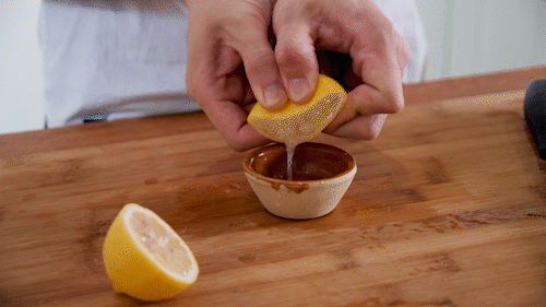 Cut the lemon in half and squeeze the lemon juice into a bowl for later use