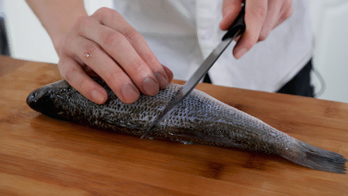 To clean the scales and internal organs of the sea bass, be sure to clean it, and remove the black part of the inner wall of the fish, otherwise it will be very fishy!