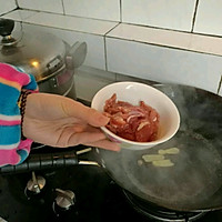 After the water boils, add the garlic slices, meat slices, salt, lard or peanut oil.