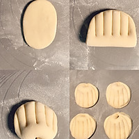 Take a small dough, flatten it, roll it into an oval-shaped thick dough, apply a layer of oil to the lower part of the dough, fold the upper part, press the lines on the surface with a scraper, and pinch the ends to the middle to form the shape of a shell