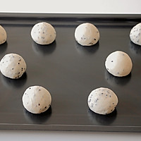 Take out the dough, exhaust and divide it into 10 parts, about 45g each, into balls, and arrange them into a baking dish, paying attention to a certain distance apart.