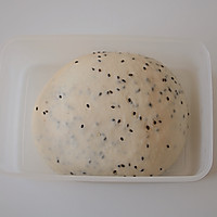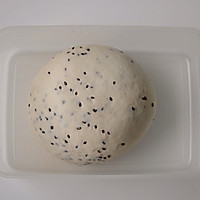 Mix the ingredients except black sesame seeds and decorative butter one day in advance, stir at medium and low speed in the blender until the dough is uniform and not coarse, add black sesame seeds, stir at low speed for 1~2 minutes, knead well, take it out and put it in the fermentation box, and put it in the refrigerator to ferment for 14~18 hours.
