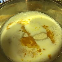 Pour the gel powder into a large basin, melt with two spoons of hot water, and add a cup of hot milk to melt evenly. (I forgot to take a picture at this step)