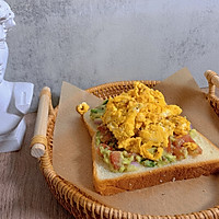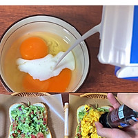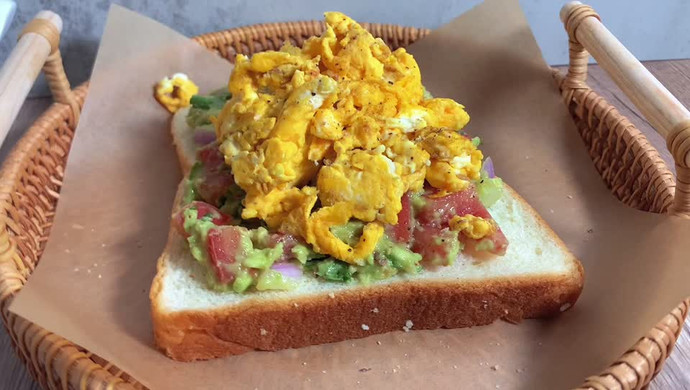 Add an appropriate amount of milk and black pepper to two eggs, stir well and pour into the pan to scatter, spread the avocado sauce on a slice of toast, add the egg, black pepper, and finish