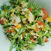 Make a vegetable salad first: tomatoes, onions, bell peppers, diced green peppers, chop bitter chrysanthemums, add two tablespoons of salad dressing, appropriate amount of sea salt and black pepper and mix well.