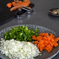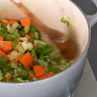 Stir-fry ingredients: Prepare a soup pot, heat the oil in a hot pan, add onions, green green peppers, jalapeno peppers and 1 pinch of salt, stir-fry over medium heat until the diced onions become transparent, add carrots and continue to stir-fry for 5 minutes, and finally add black beans and stir-fry well.