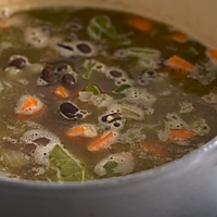 Stir the black bean soup: Take out the bay leaf and put the broth and remaining ingredients into a blender to make a particle-free soup.