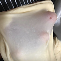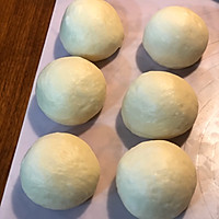 Divide into 6 pieces, roll them into circles, cover the fresh-keeping bag and let it rise for 15 minutes.