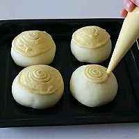 After all the fillings are wrapped, put them in a baking sheet at a distance, put the baking sheet in the oven, put a small basin of hot water at the bottom of the oven (do not turn on the heat), and carry out the final fermentation, about an hour (the fermentation time will be shorter at high room temperature)