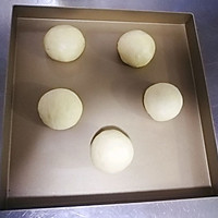 Pour the fermented dough onto the chopping board and exhaust, divide it into 5 small doughs, roll it into a round lid and ferment it twice as large