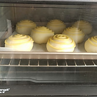 After the shaping is completed, put it in an 11-inch shallow baking dish in Yangchen, cover with plastic wrap for the second time (the temperature of the second hair should not exceed 38 degrees)