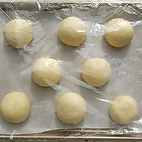 Divide the dough into 8 parts equally, roll the round lid and wrap the plastic wrap for 10 minutes.