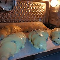 Preheat the oven first, 180 degrees. Preheat and put the middle and lower layers, heat 190, heat 180, about 20 minutes (observe and adjust at any time), and the surface will be golden. You can also wait for the color to change color and cover the tin foil on the face to prevent overheating and blackening.