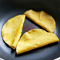 Turn on low heat in a pan and bake the tortillas until golden brown on both sides, or you can choose to fry, but the heat will be higher~