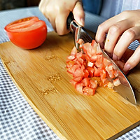 Defrost the eel in advance, wash the fruits and vegetables, boil the water with cool white, and dice the tomatoes finely first