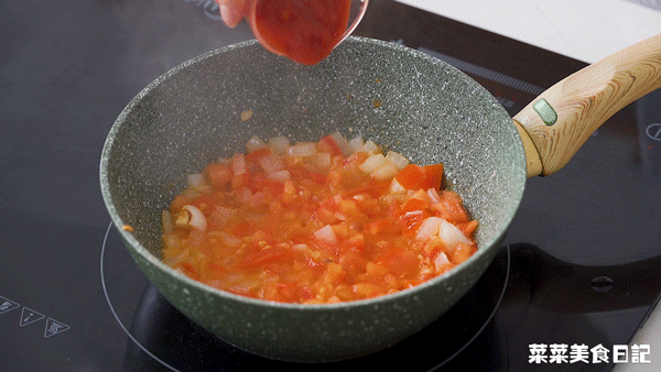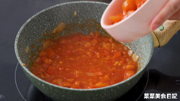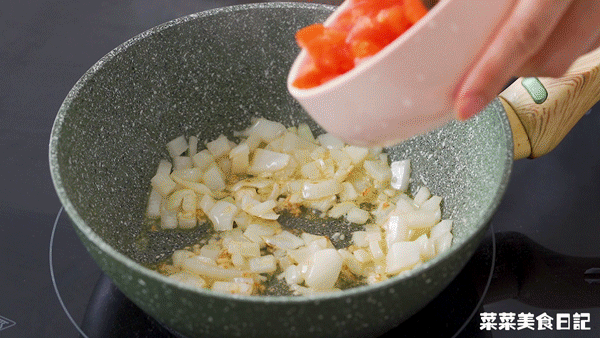 Add diced tomatoes and stir-fry until soft