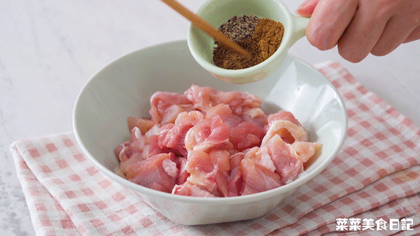 Add 1/4 teaspoon of peppercorn powder, 1/4 teaspoon of allspice powder, 1/4 teaspoon of black pepper, 1/2 teaspoon of sugar, 1 teaspoon of salt, 1 teaspoon of light soy sauce, and 1 tablespoon of olive oil to marinate for 10 minutes