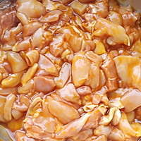 First, cut the chicken thighs into small pieces and marinate with an appropriate amount of Orleans marinade for later use.