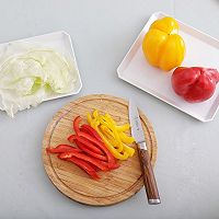 The dough is relaxing, we come to deal with the side dish, bell peppers, cream lettuce rinsed, bell peppers shredded.