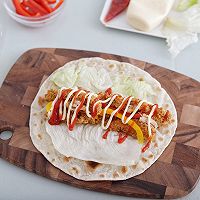 The crust is first covered with a layer of lettuce, then the chicken, bell pepper strips, and cheese are salty, so put less and more cheese slices. Finally, squeeze the tomato sauce and salad dressing.