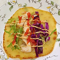 Add all the ingredients to the prepared cake squeeze the Thousand Island sauce chili sauce