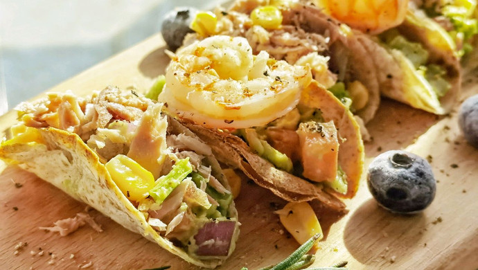1. Scald the tomatoes with hot water to easily remove the skin. 2. If the avocado you bought is not ripe and cannot be pureeed, you can steam it first. 3. Squeeze a little lemon juice into the avocado puree to prevent oxidation and blackening. 4. Coriander is the essence of salsa, so you must not do less. 5. The crust must be crispy to be delicious. 6. The meat can be replaced with shredded chicken or beef, which is very delicious. Here I use the water-soaked tuna, which is low in calories.