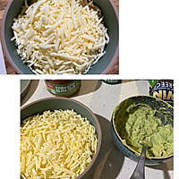 In the picture, I circled it with a red pen, which is salad vegetables and grated cheese. These two ingredients are for reference only, rough green leafy vegetables are fine, and ordinary cheese crumbles are fine.