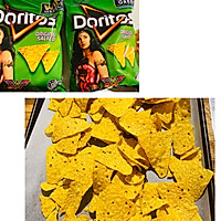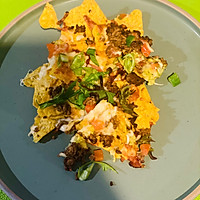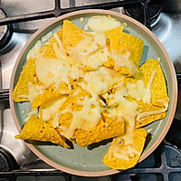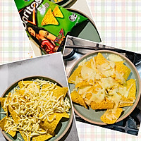 1. Place the chips on a plate. 2. Sprinkle with crumbled cheese on top. 3. Oven oven, 180 degrees, 15 minutes, all the cheese can be melted. 4. Start eating. This is a simple version with only cheese and potato chips.