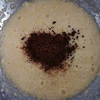Add the ground coffee and low-gluten flour and stir well