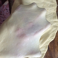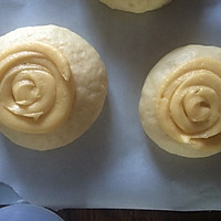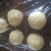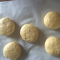 Make the remaining four small doughs in turn. Be careful not to press the dough too thin, otherwise it will be easy to break the skin and expose the filling. Then put it in the oven and let it rise for a second time for 30 minutes. Put hot water on the bottom of the baking sheet to prevent the dough from drying out.