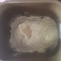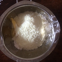 Pour in the high powder, dig a small hole in the middle and pour in the yeast.