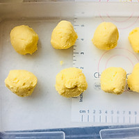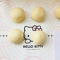 8. Divide the dough into dough about 75 grams in size. Relax for 20 minutes. The dough size can be adjusted according to your own requirements. Take out the refrigerated filling and divide it into balls, about 45 grams each.