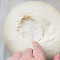 The medium ingredients are mixed into a ball, fermented at room temperature until the inside of the finger is pulled to appear cobweb-like, and the fermentation time should be according to the room temperature, if the room temperature is 25 degrees, it will take about 60 minutes.