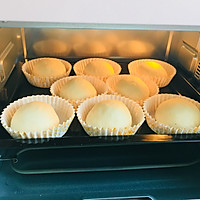 11. Put the dough wrapped in the filling into a paper tray and ferment twice.