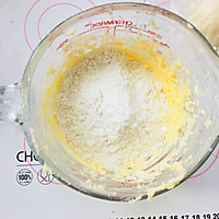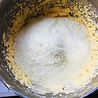 12. For the puff pastry part, the butter is softened at room temperature, add powdered sugar and stir well, then add the egg liquid in batches, add low powder, stir well and put it into a piping bag.