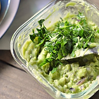 Guacamole / Guacamole Done! The sauce is ready, and the next step is to fill it in. Also, I prepared garlic pork strips, which are delicious. If you like it, this sauce goes well with sandwiches too