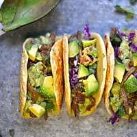 Finally, sprinkle with some coriander, purple cabbage, and avocado cubes