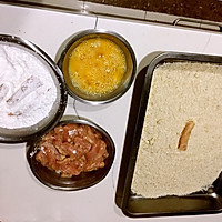 Glue the marinated tenderloin with cornstarch (this will coat it with more egg mixture), then glue the egg mixture, and finally coat it with breadcrumbs.