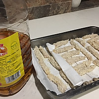 Pour oil into the pot and heat until it is 60% hot, add the breadcrumb tenderloin and fry until golden brown, remove and drain the oil and set aside!