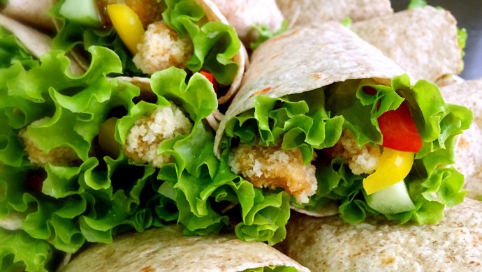 Top with lettuce, bell peppers, cucumbers, tenderloin, and pour in the sweet and spicy sauce and roll it into your favorite shape.