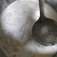 After the rice milk becomes solid, add milk and sugar, continue to stir over low heat, remember to stir quickly, otherwise it is easy to paste