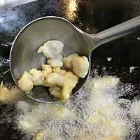 2. Add wide oil to the pot, heat until 60% hot, fry the steak until it is broken and then remove it.